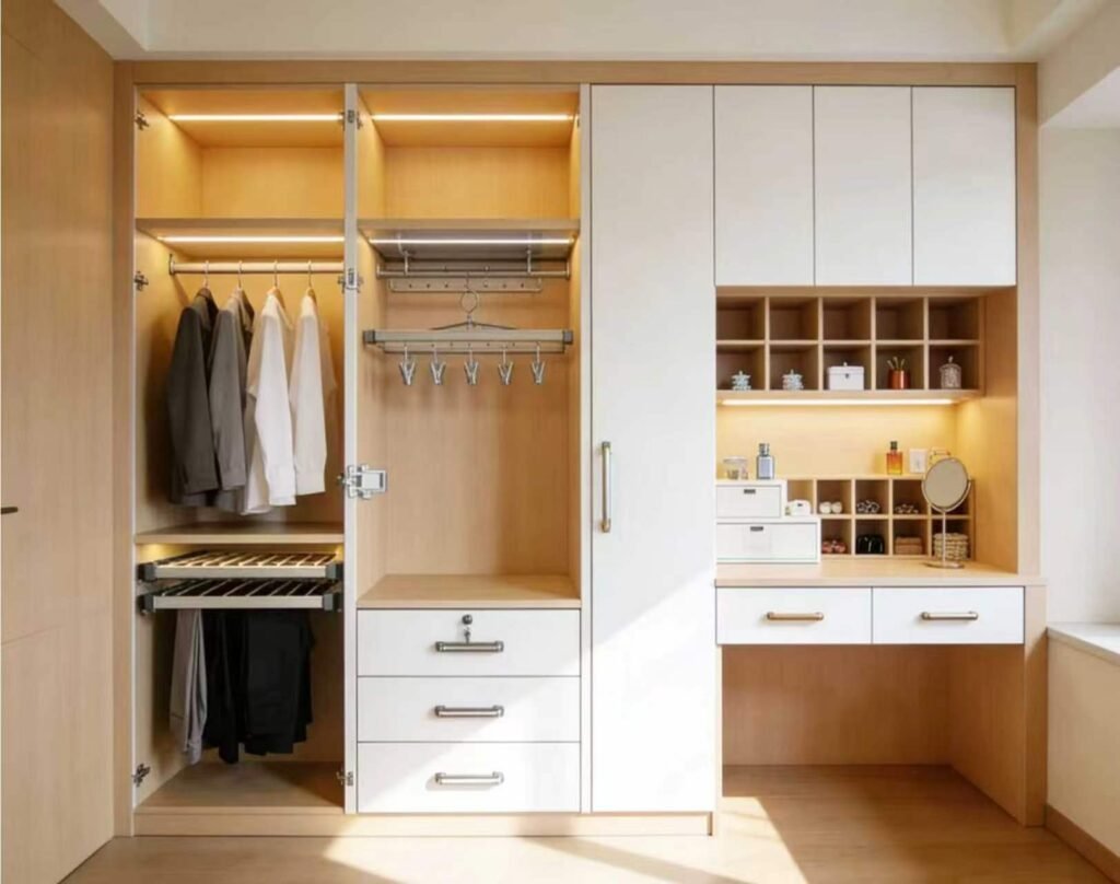 Innovative wardrobe hardware featuring silent sliding systems and sturdy fittings. Maximize space with seamless functionality.